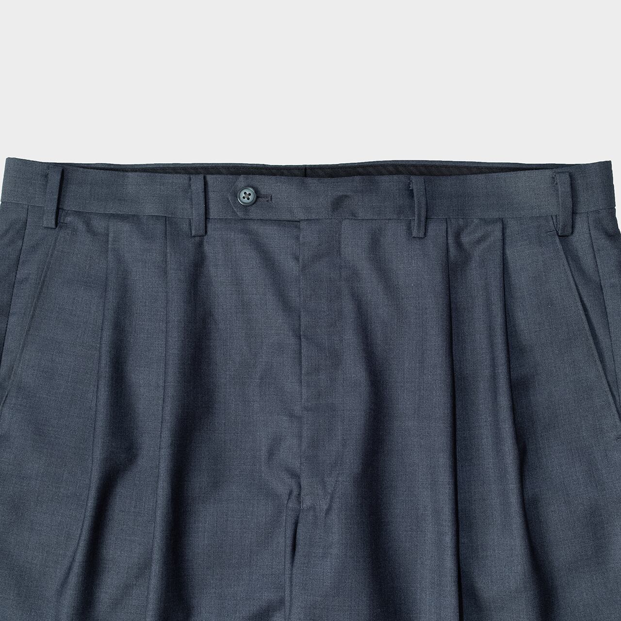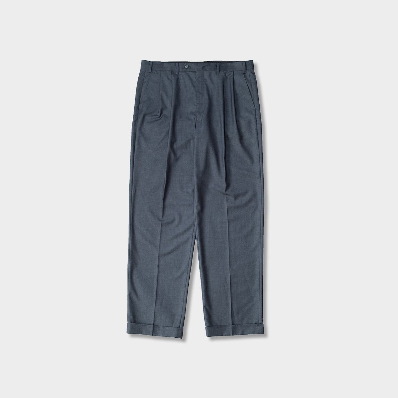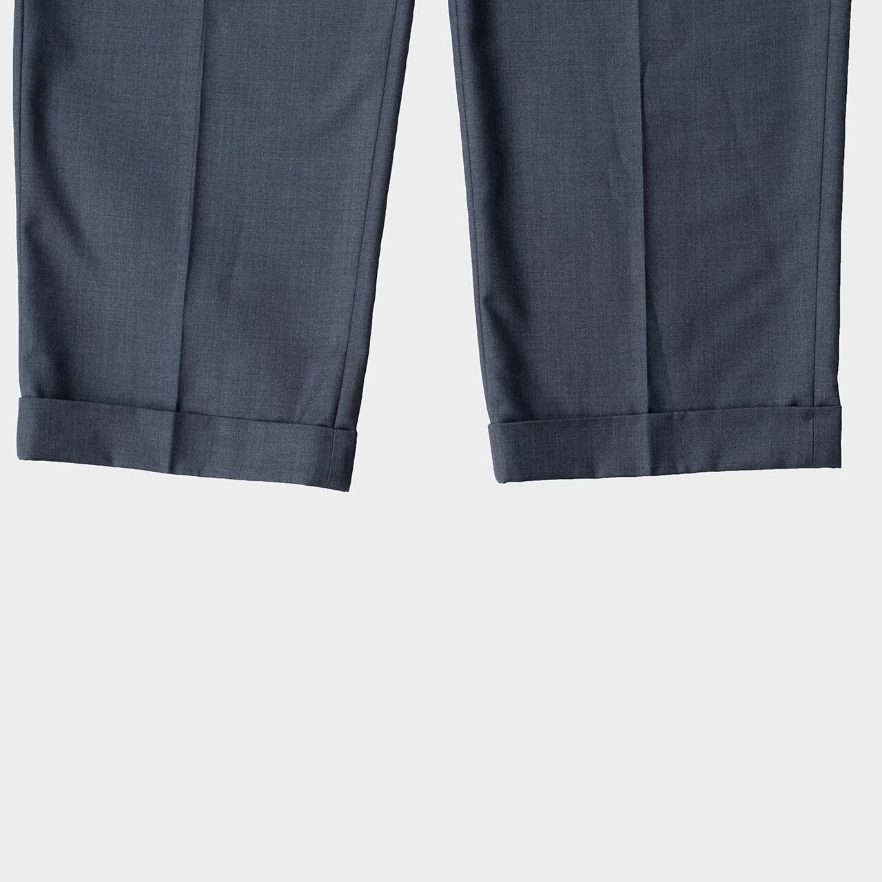 こちらのアイテムも非常に美しいドレスよりのパンツで、クラシックなツータックのデザインに裾もダブル仕上げ。プリーツにより腰回りもゆったりと履け、レーヨンが多く入ることでよりとろみを感じるドレープ感の美しいパンツです!