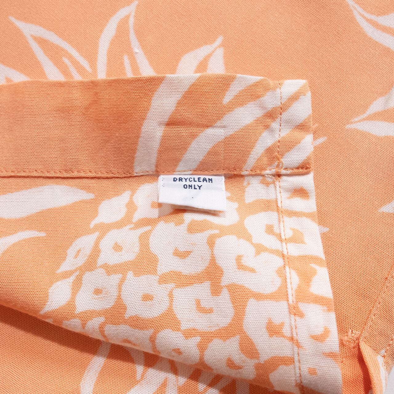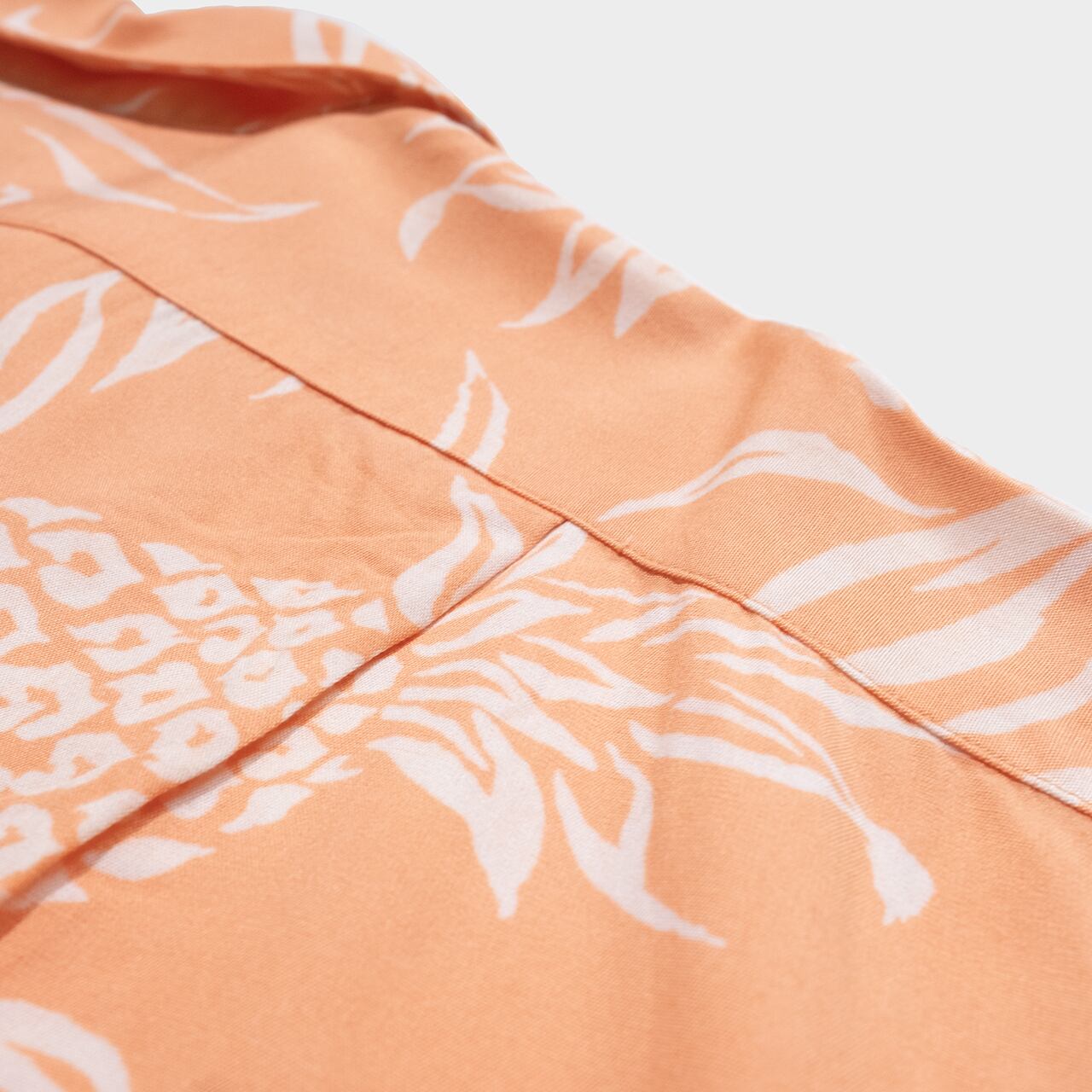 アロハシャツの定番柄であるパイナップルが配置された夏らしいデザインながら、配色は2色のみと落ち着いた雰囲気なのが◎