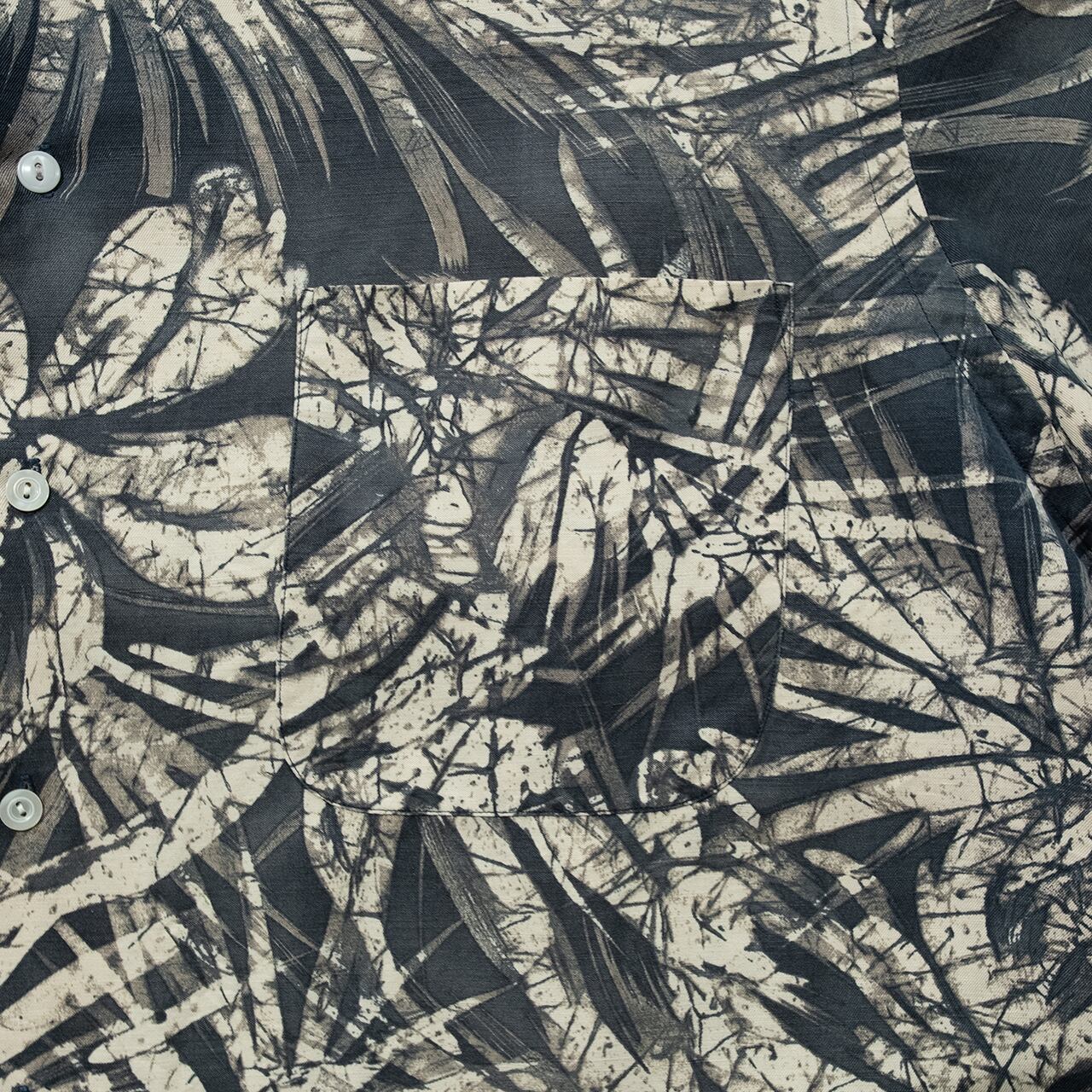 ボタニカルパターンながら墨汁でガラ付したような色合いとドローイングタッチが非常に雰囲気の良い1枚◎