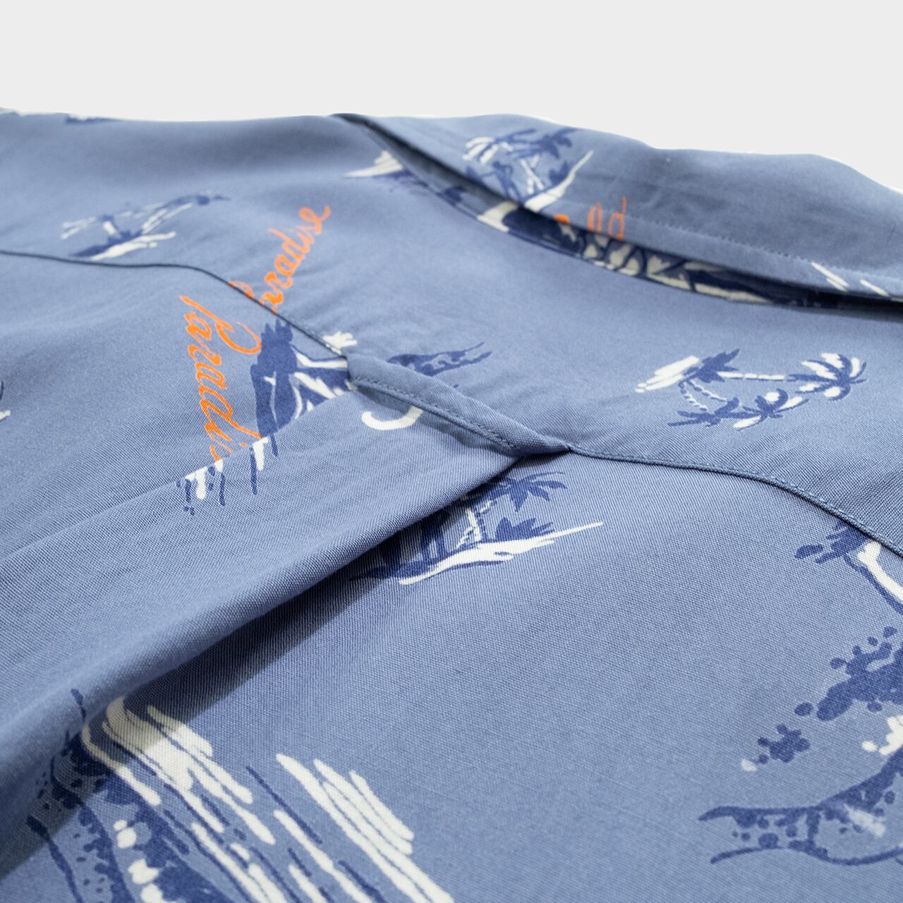 デザインはアロハシャツを思い起こさせるような南国の島のようなパターンのプリントですが、同系色でまとめられたことで落ち着きのある見た目◎