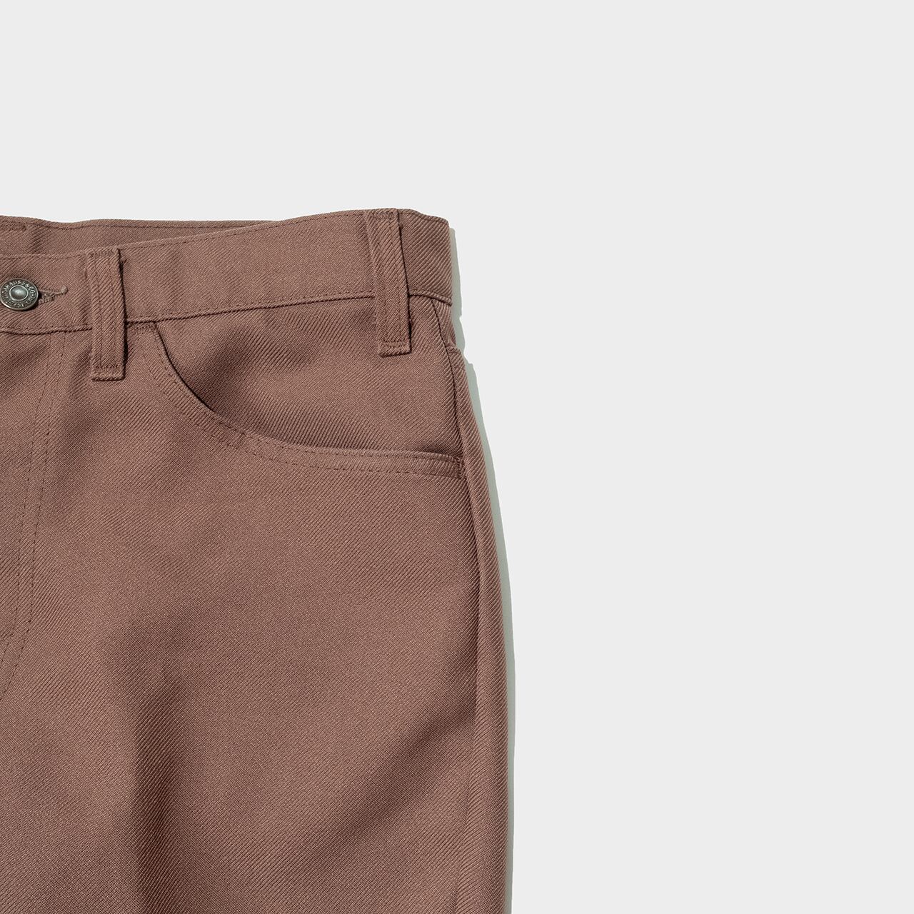 最近人気高騰中のアクションスラックスにも採用される、シワになりづらく若干ストレッチのきいたポリエステルベースの履きやすいアイテムで、
