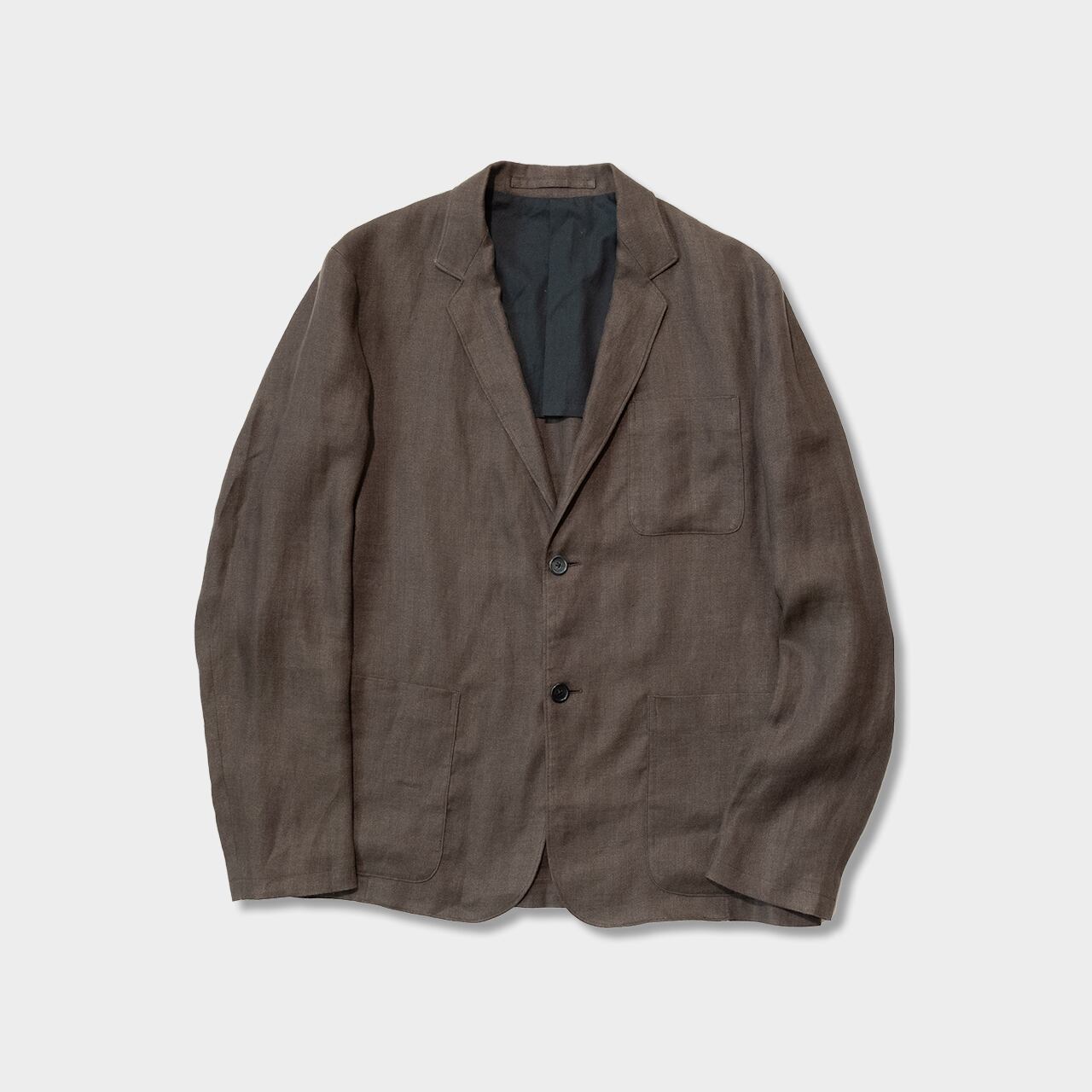 リネン100%でフルフル感満載の柔らかい肉感でよーく見るとヘリンボーン柄と細かいこだわり。カラーもブラウンに少しオリーブを混ぜたような絶妙なニュアンスのカラーリングです。