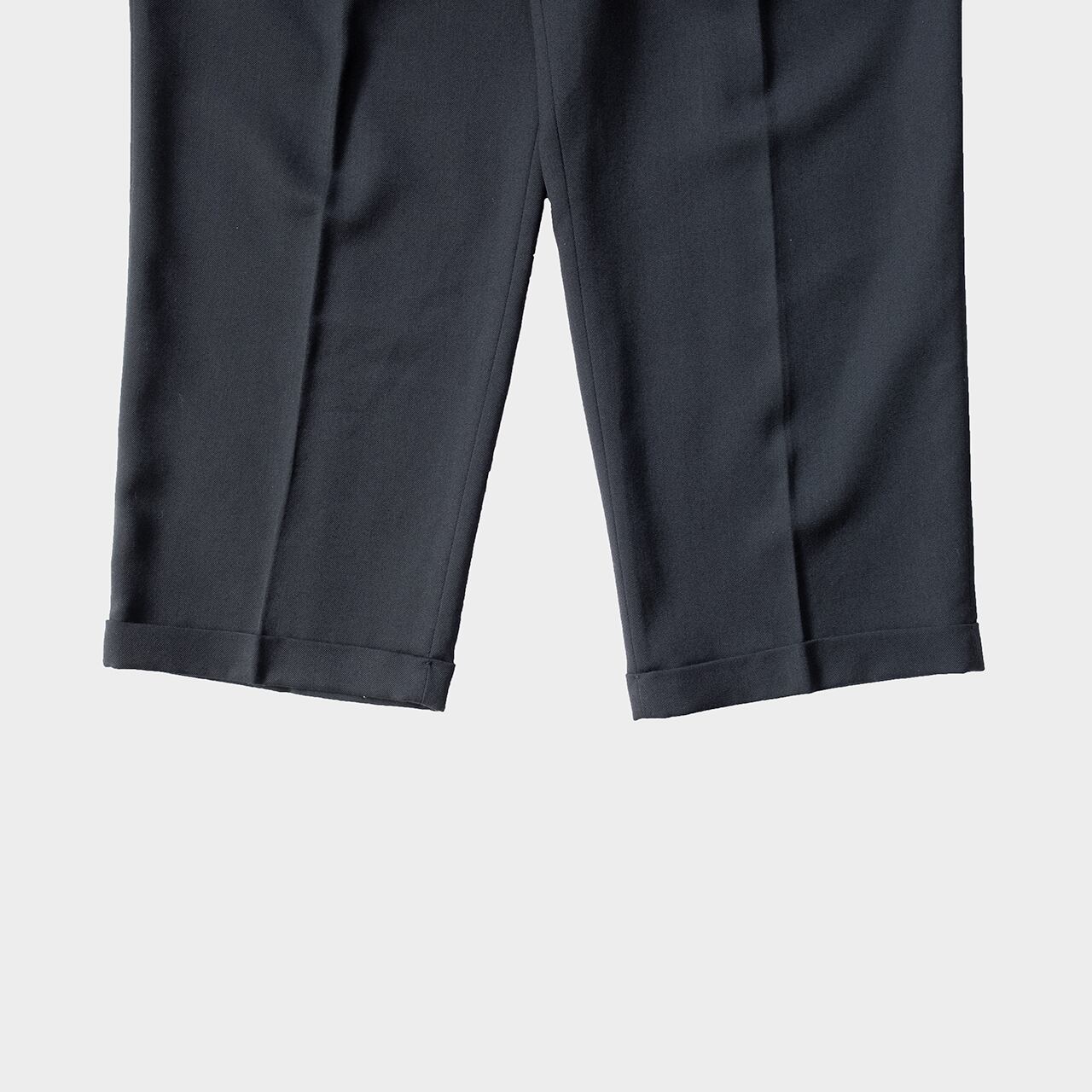 ウーステッドウールという、日本で梳毛と呼ばれる通常のウールから長い毛のみを残した上質なウールを使用したアイテムでチクチク感は通常のものに比べて抑えめ、ポリエステルも混ぜているため洗濯もできる便利なスラックス!