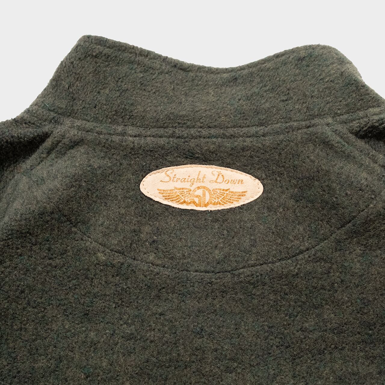 ハーフネックを折り返すとスウェード調の生地になっていてポロシャツのような雰囲気でも着て頂ける使い勝手の非常に良いアイテム。