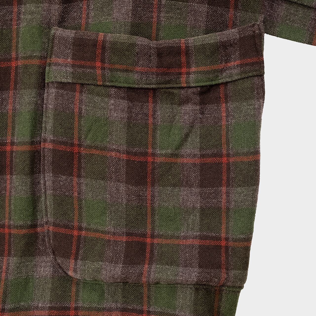 モスグリーンのベースにブラウン、ダークブラウン、レッドの多色使いでオンブレやシャドーチェック、はたまたタータンチェックにも見える非常に品のある立ち振る舞い!