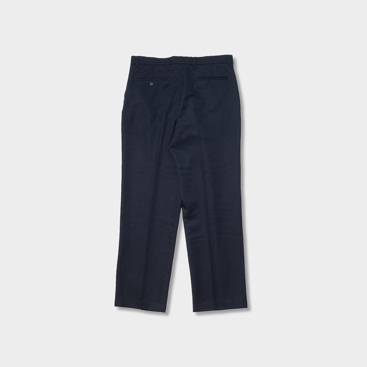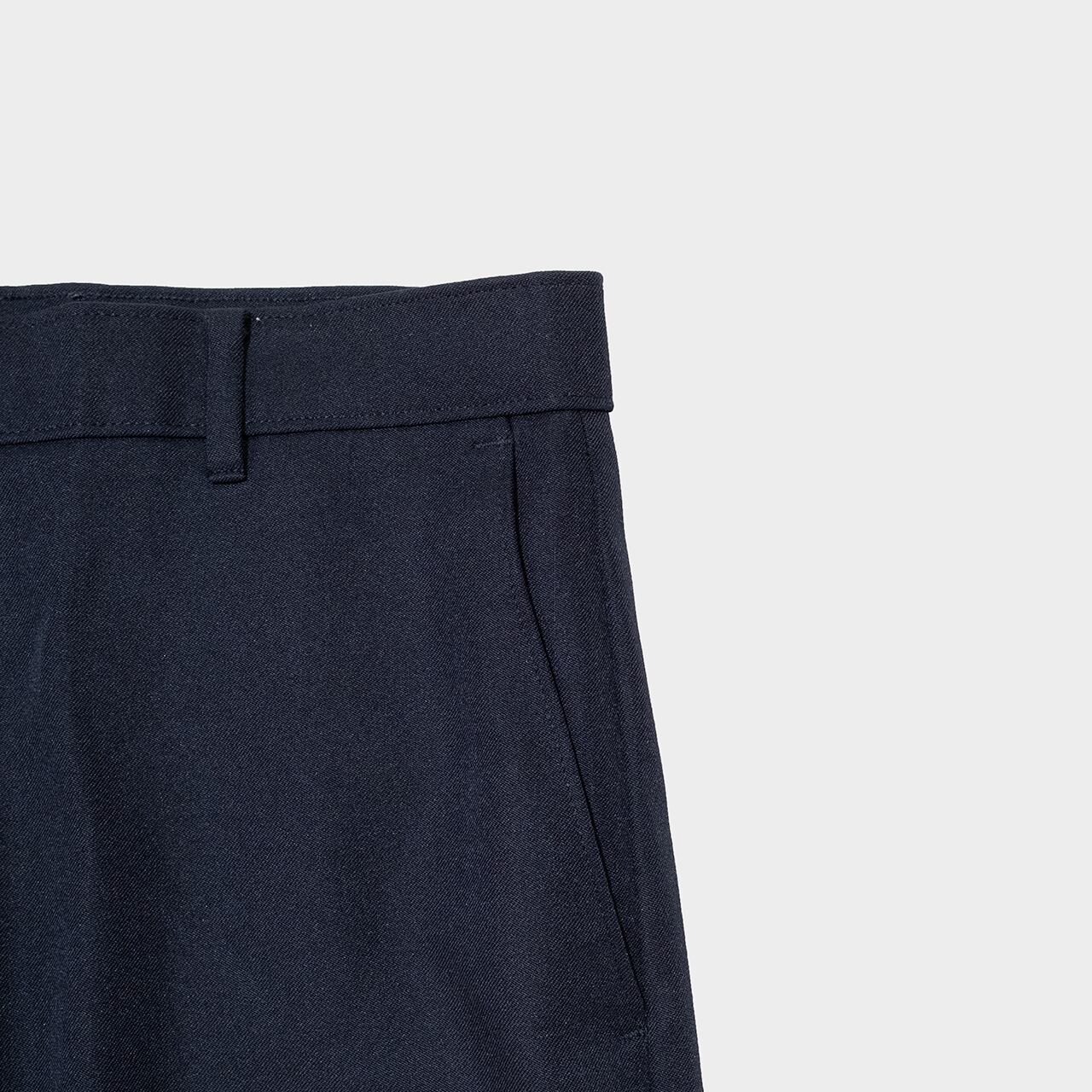シャリモチのアクションスラックス特有のちょうどいい塩梅が良きな感じの質感でお色はちょっくら珍しいダークネイビー。意外と見かけないカラーではないでしょうか!